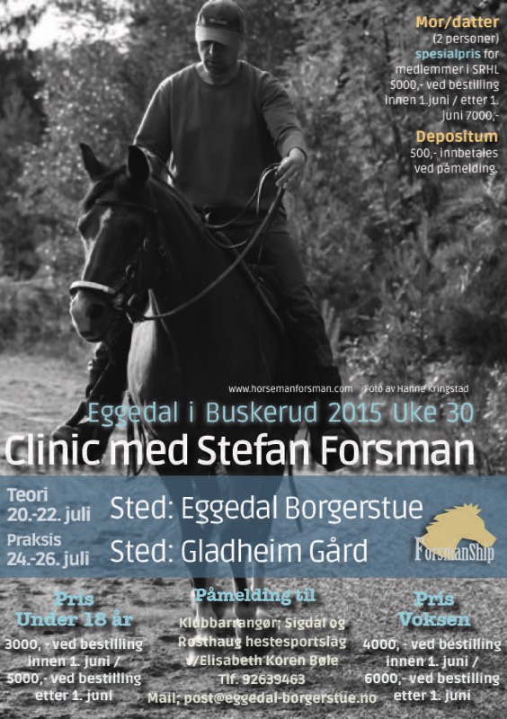 Dyrespesialist og trener Stefan Forsman fra Sverige, vil bringe den nyeste utviklingen av Forsmanship - hans dyretreningsmetoder - til Eggedal i Buskerud 20. - 22. juli og 24. - 26. juli i 2015